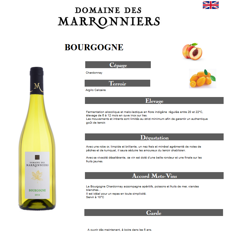 Avec une robe or, limpide et brillante, un nez frais et minéral agrémenté de notes de pêches et de kumquat, il saura séduire les amoureux du terroir chablisien.