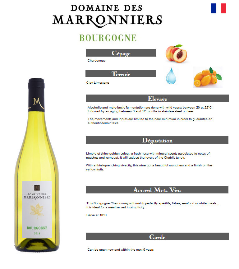 This Bourgogne Chardonnay will match perfectly apéritifs, fishes, sea-food or white meats…